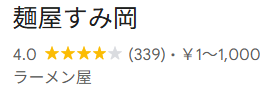 | 口コミ評価 | 4.0(339件のレビュー) |